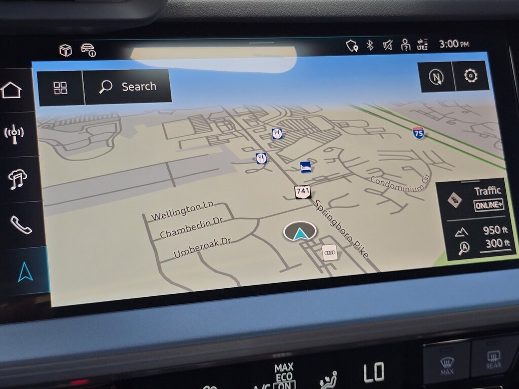 quattro, Black Leather, 10 Speakers, 190 Watt 10 Speaker Audi Sound System, 4-Wheel Disc Brakes, ABS brakes, Air Conditioning, Alloy wheels, AM/FM radio, Audi Connect CARE, Audi Connect NAV and PLUS, Auto High-beam Headlights, Automatic temperature control, Brake assist, Bumpers: body-color, Delay-off headlights, Driver door bin, Driver vanity mirror, Dual front impact airbags, Dual front side impact airbags, Electronic Stability Control, Emergency communication system: Audi connect CARE, Exterior Parking Camera Rear, Four wheel independent suspension, Front anti-roll bar, Front Bucket Seats, Front Center Armrest, Front dual zone A/C, Front reading lights, Fully automatic headlights, Genuine wood dashboard insert, Heated door mirrors, Heated Front Bucket Seats, Heated front seats, Illuminated entry, Knee airbag, Leather Seating Surfaces, Leather steering wheel, Low tire pressure warning, Navigation system: Audi MMI Navigation with Touch Response, Occupant sensing airbag, Outside temperature display, Overhead airbag, Overhead console, Panic alarm, Passenger door bin, Passenger vanity mirror, Power door mirrors, Power driver seat, Power moonroof, Power passenger seat, Power steering, Power windows, Radio data system, Radio: MMI Touch Display with 10.1" Touchscreen, Rain sensing wipers, Rear air conditioning, Rear anti-roll bar, Rear fog lights, Rear reading lights, Rear seat center armrest, Rear side impact airbag, Rear window defroster, Remote keyless entry, Security system, Speed control, Speed-sensing steering, Speed-Sensitive Wipers, Split folding rear seat, Steering wheel mounted audio controls, Tachometer, Telescoping steering wheel, Tilt steering wheel, Traction control, Trip computer, Turn signal indicator mirrors, Variably intermittent wipers, and Wheels: 17" 5-V-Spoke Design.