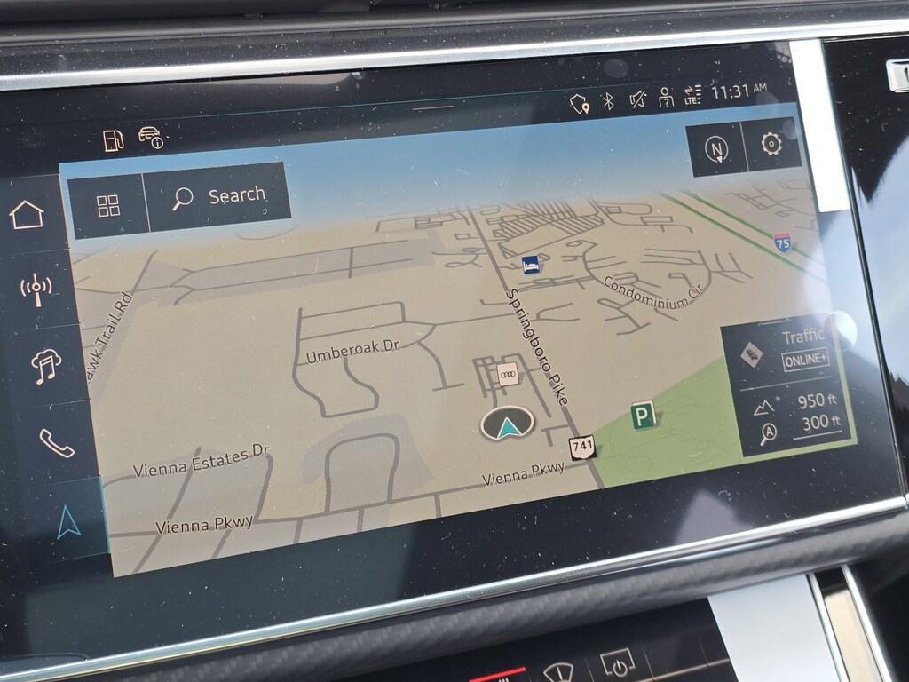22" Wheel Package (Wheels: 22" 5-Arm-Edge Design with Platinum Finish), Carbon Package (Carbon Fiber Exterior Mirror Housings and Carbon Fiber Exterior Side Sill Inlays), Extended Leather Package, LED Interior Lighting Plus Package, Prestige Package (Adaptive Air Suspension, All-Wheel Steering, Bang & Olufsen Premium Sound System with 3D Sound, Control Buttons in Gloss Black with Haptic Feedback, Dual-Pane Acoustic Glass For Side Windows, Four-Zone Automatic Climate Control, Front Passenger Memory Seat Function, Head-Up Display, Heated Rear Seats, Heated Steering Wheel, Illuminated Door Sills, Individual Contour Front Seats with Power Lumbar For Passenger, Intersection Assist, Massage Function For Front Seats, Power Soft-Closing Doors, Rear Door/Side Windows and Tailgate Sunshades, Remote Park Assist Plus, Top View Camera System with Virtual 360 View, Valcona/Cricket Leather Seat Trim, and Ventilation For Front Seats), Sport Plus Package (Anthracite Audi Rings, Black Optic Exterior Trim and Roof Rails, Carbon Twill Matte Inlays, Crimson Red Interior Stitching and Seat Belts, Dark Chrome Exhaust Tips, Model Badge Delete, Red Brake Calipers, S Line Exterior, Sport Adaptive Air Suspension, Sport Seats Plus, Stainless Steel Pedal Caps, and Valcona Leather Seat Trim), Audi Beam Rings, Audi Guard All-Weather Mats, 10 Speakers, 3rd row seats: bench, 4-Wheel Disc Brakes, ABS brakes, Air Conditioning, Alloy wheels, AM/FM radio, Auto High-beam Headlights, Auto-dimming door mirrors, Auto-dimming Rear-View mirror, Automatic temperature control, Brake assist, Bumpers: body-color, Compass, Delay-off headlights, Driver door bin, Driver vanity mirror, Dual front impact airbags, Dual front side impact airbags, Electronic Stability Control, Emergency communication system: Audi connect CARE, Exterior Parking Camera Rear, Four wheel independent suspension, Front anti-roll bar, Front Bucket Seats, Front Center Armrest, Front dual zone A/C, Front fog lights, Front reading lights, Fully automatic headlights, Garage door transmitter: HomeLink, Genuine wood door panel insert, Heated door mirrors, Heated Front Bucket Seats, Heated front seats, Illuminated entry, Leather Seating Surfaces, Leather Shift Knob, Leather steering wheel, Low tire pressure warning, Memory seat, Navigation system: Audi MMI Navigation plus with Touch Response, Occupant sensing airbag, Outside temperature display, Overhead airbag, Overhead console, Panic alarm, Passenger door bin, Passenger vanity mirror, Power door mirrors, Power driver seat, Power Liftgate, Power moonroof: Panoramic, Power passenger seat, Power steering, Power windows, Radio data system, Radio: Audi Sound System, Rain sensing wipers, Rear air conditioning, Rear anti-roll bar, Rear fog lights, Rear reading lights, Rear seat center armrest, Rear side impact airbag, Rear window defroster, Rear window wiper, Reclining 3rd row seat, Remote keyless entry, Security system, Speed control, Speed-sensing steering, Split folding rear seat, Spoiler, Steering wheel memory, Steering wheel mounted audio controls, Tachometer, Telescoping steering wheel, Tilt steering wheel, Traction control, Trip computer, Turn signal indicator mirrors, and Variably intermittent wipers.