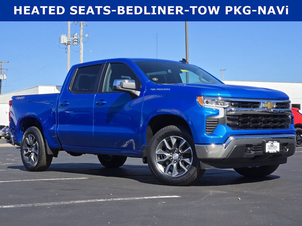 $9,579 off MSRP! White Allen Chevrolet is proud to offer this 2025 Chevrolet Silverado 1500 LT in Riptide Blue Metallic. HEATED STEERING WHEEL, TRAILER BRAKE CONTROLS, TOW PACKAGE, 4X4, NAVIGATION, APPLE CARPLAY AND ANDROID AUTO, BACKUP CAMERA, BEDLINER, REMOTE START, 10-Way Power Driver Seat w/Lumbar, 120-Volt Bed Mounted Power Outlet, 120-Volt Interior Power Outlet, Convenience Package, Dual Rear USB Ports (Charge Only), Dual-Zone Automatic Climate Control, Heated Driver & Front Outboard Passenger Seats, Heated Steering Wheel, High Capacity Suspension Package, Hitch Guidance, Keyless Open & Start, LED Cargo Area Lighting, Manual Tilt/Telescoping Steering Column, Standard Suspension Package, Trailering Package, Wrapped Steering Wheel.
