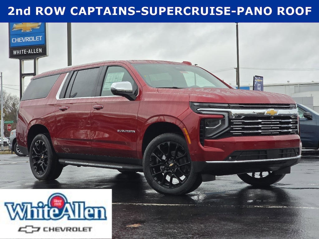 Recent Arrival! $4,817 off MSRP! White Allen Chevrolet is proud to offer this 2026 Chevrolet Suburban Premier in Radiant Red Tintcoat. Wireless Charging, 2nd ROW CAPTAINS, 3rd ROW, HEATED STEERING WHEEL, HEADS UP DISPLAY, SUPERCRUISE HANDS FREE, HEATED AND COOLED LEATHER TRIM SEATS, TOW PACKAGE, 4X4, PANORAMIC ROOF MOONROOF, NAVIGATION, APPLE CARPLAY AND ANDROID AUTO, BACKUP CAMERA, BACKUP SENSORS, FRONT SENSORS, LANE DEPARTURE WARNING, BLIND SPOT MONITORING, RUNNING BOARDS, REMOTE START, HEADREST ENTERTAINMENT, 15 Diagonal Multi-Color Head-Up Display, 2-Speed Active Electronic AutoTrac Transfer Case, Advanced Security Package, Advanced Trailering Package, AutoSense Hands-Free Power Liftgate, Dual-Pane Power Panoramic Sunroof, Glass Breakage Sensor, Hill Descent Control, Integrated Trailer Brake Controller, Max Trailering Package, Navigation system: Google built-in compatibility (select service plan required, terms and limitations apply), Rear Seat Media System, Self-Powered Horn Theft-Deterrent Alarm System, Smart Trailer Integration Indicator, Technology & Entertainment Package, Technology Package, Vehicle Inclination Sensor, Vehicle Interior Movement Sensor.